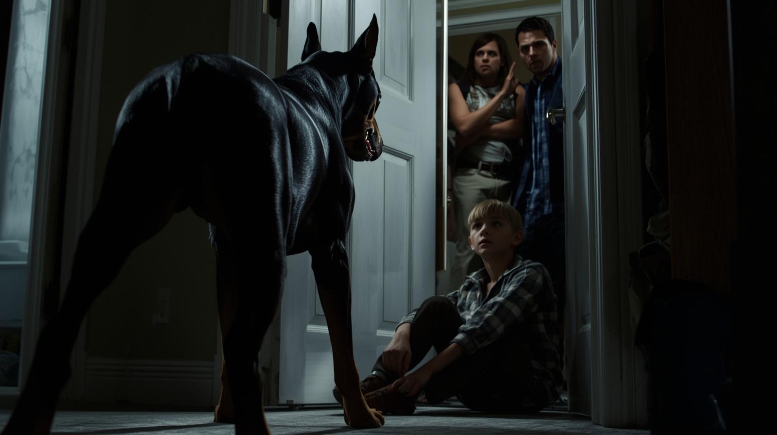 El dóberman había repelido a la serpiente, garantizando así la seguridad del niño. Aunque exhausto, la determinación del perro no flaqueó hasta que la amenaza desapareció.