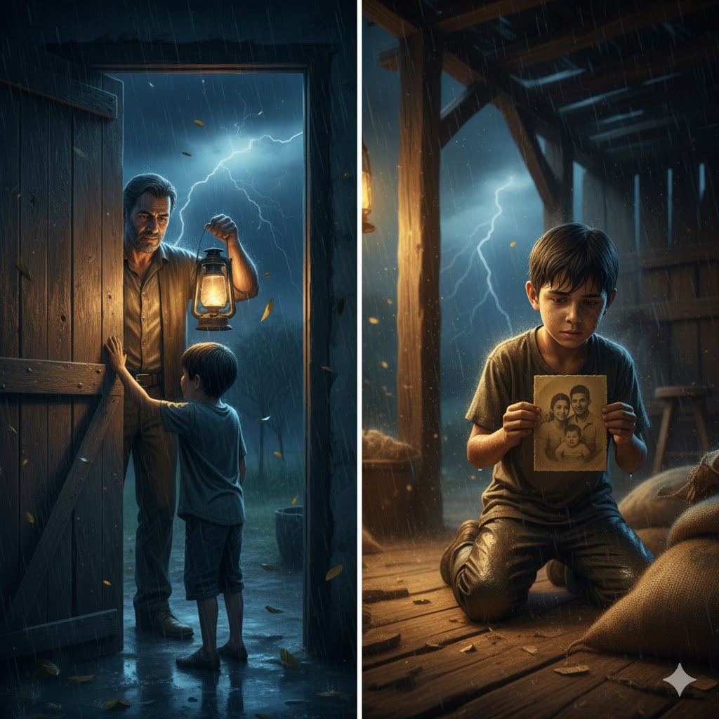 Mientras organizaba algunos sacos para hacer una cama improvisada, su mano tropezó con algo que había caído detrás de una caja de herramientas. Era una fotografía antigua, amarillenta por el tiempo. Mateo sostuvo el papel delicadamente y observó la imagen a la luz tenue que entraba por la ventana del granero.