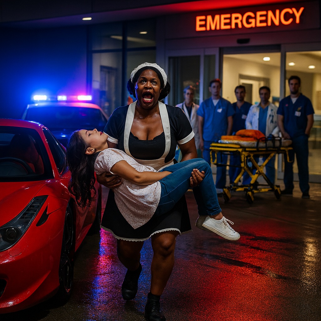 Aquella mañana, Maya había notado que Elena estaba más pálida de lo habitual, menos animada. Su instinto gritó que algo andaba mal. Cuando la convulsión llegó y Elena se desplomó, Maya actuó por instinto. Cargó a la niña, revisó el intercomunicador, intentó la línea fija: todo falló. Sin tiempo, el Ferrari se convirtió en su única opción.