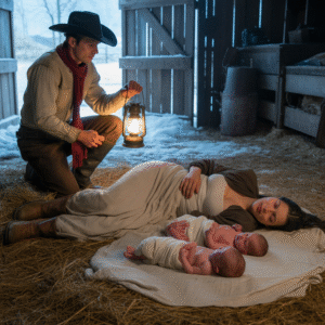 Elena levantó la mirada, sus ojos brillando por las lágrimas y el agotamiento. Por favor, solo por esta noche no tengo a dónde ir. ¿De dónde vienes? ¿Cómo llegaste hasta mi granero en medio de esta tormenta? Mi auto se descompuso. Elena tragó saliva mirando a los bebés que dormían inquietos. Comencé el trabajo de parto y no pude llegar al hospital.