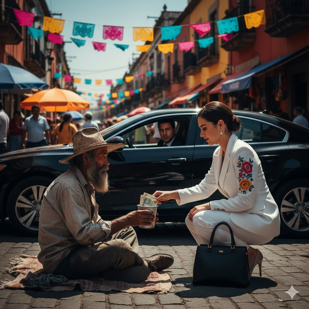 Me di la vuelta, con el corazón apretado porque no llevaba cambio. Pero algo me impulsó a acercarme, saqué un pañuelo bordado de mi bolso y se lo entregué con las manos temblorosas. Él lo tomó sin decir palabra, y sus ojos se iluminaron como si acabara de encontrar una esperanza.