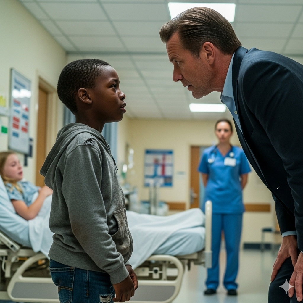 El hospital ya se había acostumbrado a los visitantes en trajes—benefactores ricos con gestos solemnes, doctores hablando con tonos cortantes, incluso reporteros buscando frases llamativas. Pero nadie esperaba la llegada de un niño descalzo, con una sudadera raída, los jeans rotos en la rodilla y el rostro manchado con el polvo de la ciudad. No pertenecía a un lugar donde las puertas de cristal se abrían en silencio para hombres con gemelos de oro.