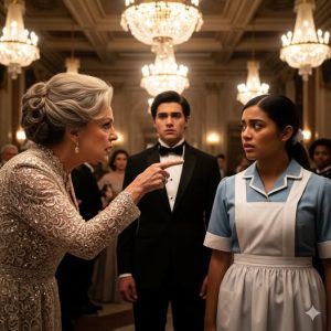 Kesha permanecía de rodillas, recogiendo cristales, pero sus ojos no mostraban ni humillación ni miedo. Era una calma profunda, una serenidad que nadie allí supo descifrar. El encargado del evento intentó intervenir, pero William lo cortó con un gesto teatral. La orquesta, confundida, dejó de tocar. El silencio se volvió expectante.