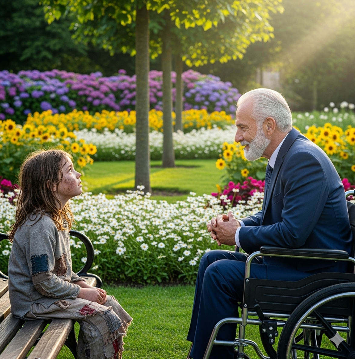 Álvaro entrecerró los ojos, curioso e incrédulo, al mismo tiempo. Milagros. Aquí, a plena luz del día, pensó con una media sonrisa cargada de ironía. Se acercó despacio, las llantas de la silla deslizándose sobre el camino cubierto de hojas secas y se detuvo frente a la niña. “¿Tú vendes milagros?”, preguntó, dejando que el sarcasmo se deslizara en su voz. Yo no vendo, señor, yo los hago,”, respondió ella, levantando el rostro y sosteniendo su mirada sin ningún atisbo de miedo.