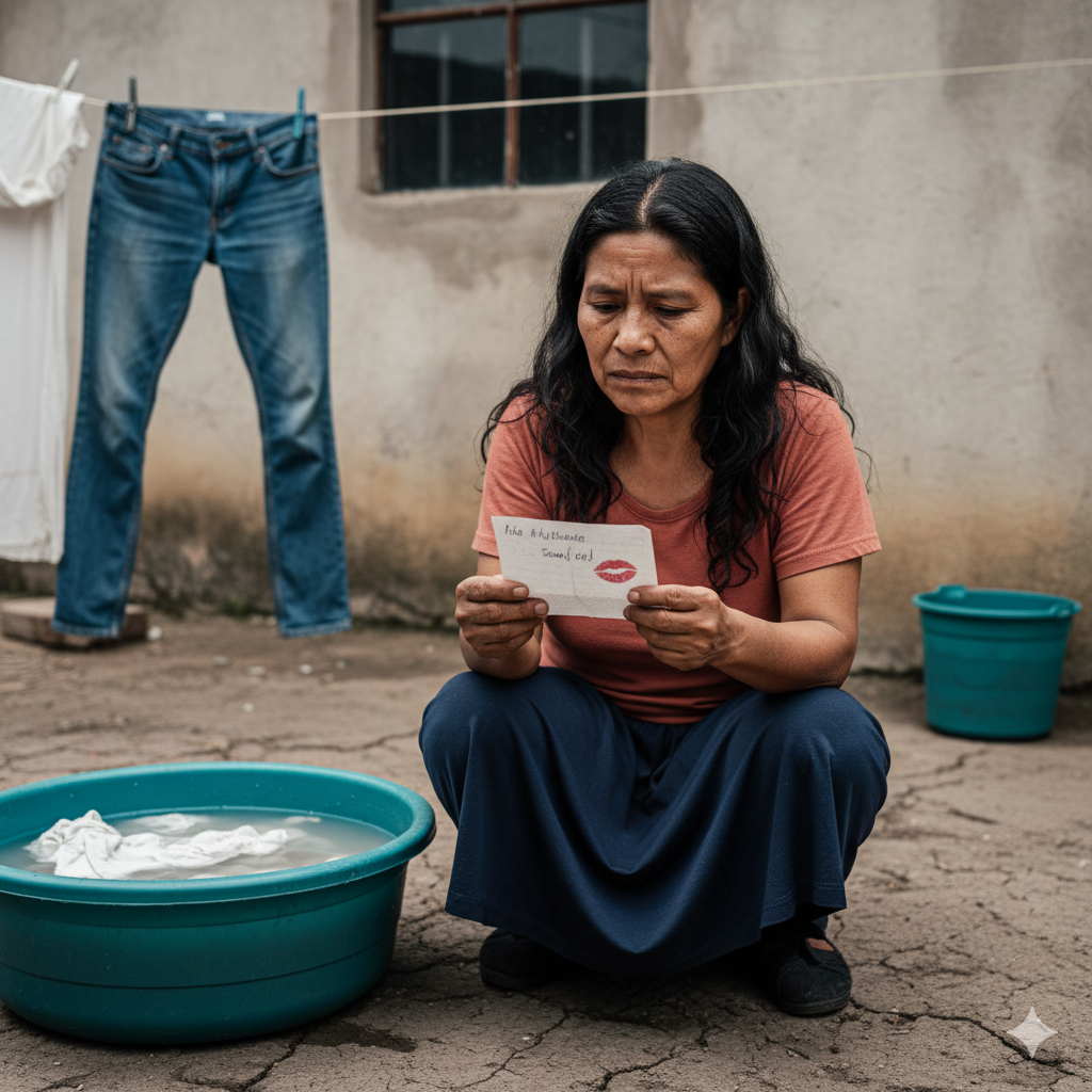 Pero un día, mientras lavaba sus pantalones, saqué algo diferente. No era dinero, ni un recibo. Era una servilleta… pero no cualquiera. Tenía una marca de lápiz labial rojo y un pequeño mensaje escrito a un lado: