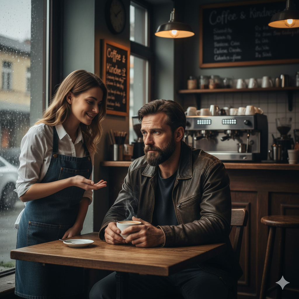 Solo quería café y silencio… pero una pregunta sencilla de la mesera en un pueblo cambió algo que ni él sabía que necesitaba.