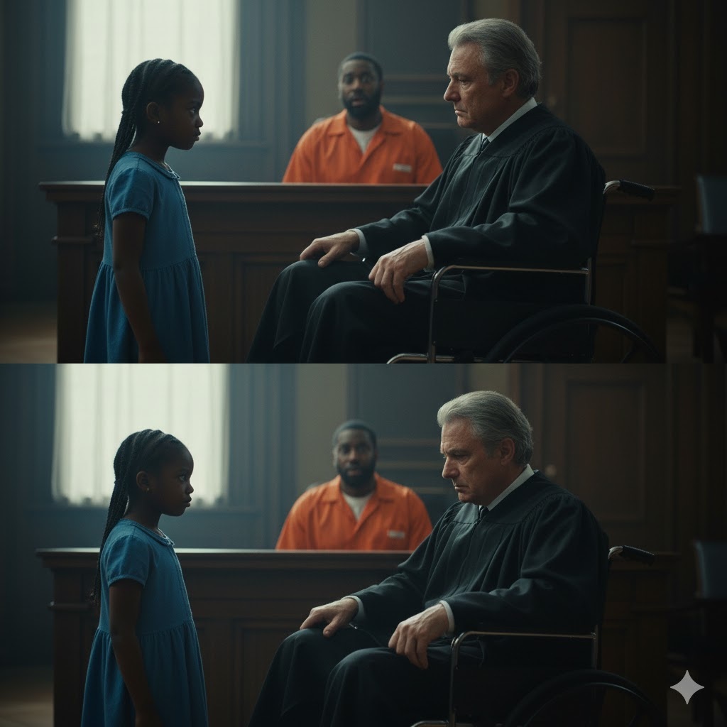 En un tribunal abarrotado, el juez severo en silla de ruedas estaba a punto de condenar a un padre pobre por un crimen que juraba no haber cometido. Fue entonces cuando la hija del acusado, una niña de 7 años, se levantó, caminó hasta el juez y dijo con voz firme, “Suelte a mi papá y yo lo hago caminar.