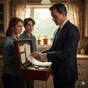 “Su hijo,” dijo el hombre, con los ojos fijos en Lucas, “es el heredero legítimo de la fortuna del señor Nathaniel Hawthorne. Y necesitamos que venga con nosotros.”