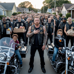 Antes de que cayera la tarde, los videos ya circulaban en redes sociales. Clips mostraban a docenas de motocicletas estacionadas frente a una casita sencilla, a hombres tatuados cargando cajas de alimentos, a niños riendo sobre Harleys rugientes.