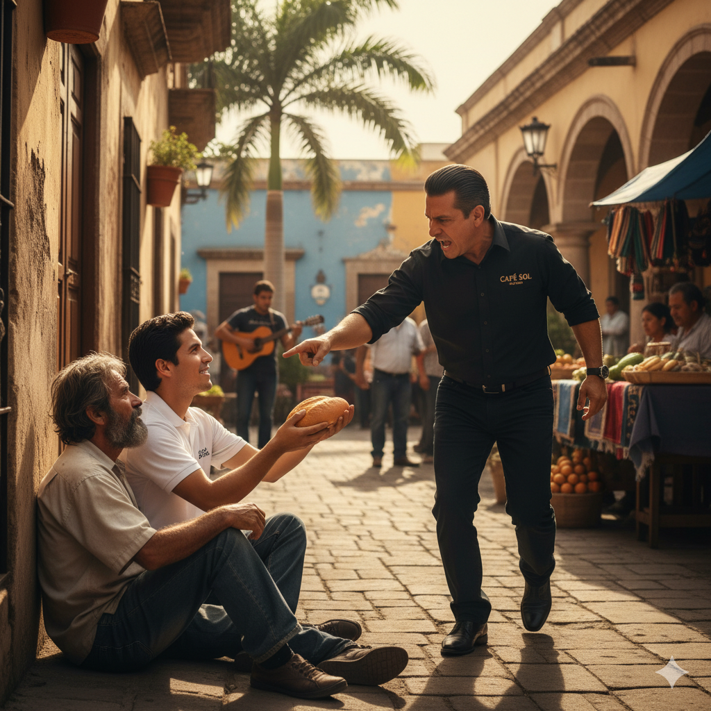 El hombre sonrió débilmente y aceptó el pan con manos temblorosas. En ese instante, una sensación extraña recorrió el local: una mezcla de tensión, expectativa y culpa.