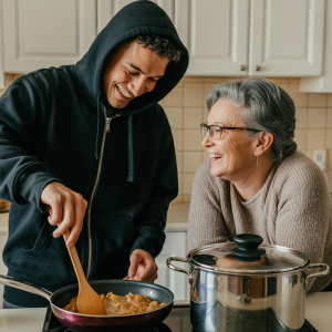 Un ladrón entra a robar una casa y se encuentra a una abuela que lo confunde con su nieto. No solo no roba: le cocina.