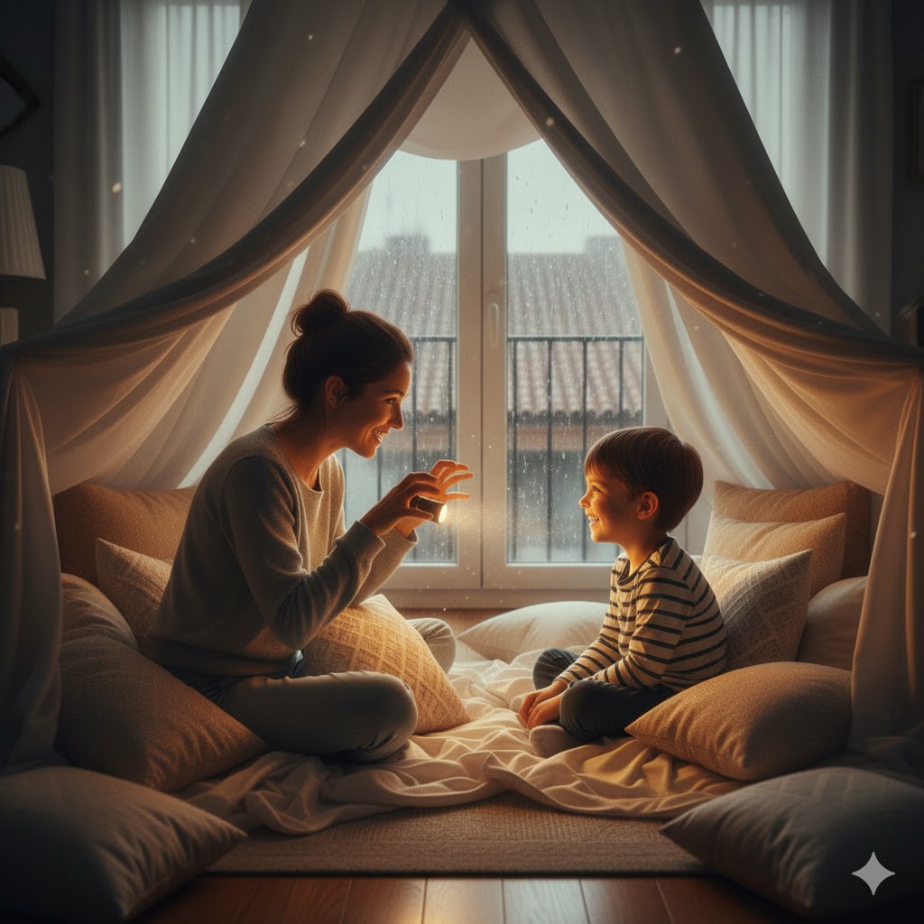 Una tarde lluviosa, de esas en las que el cielo de Madrid se tiñe de un gris melancólico, Clara decidió construir una fortaleza en mitad del salón. Usó sábanas, cojines y sillas, creando una tienda de campaña improvisada. Con una linterna en la mano, invitó a Lucas a entrar con un gesto cómplice. Dentro, comieron galletas María y fingieron ser exploradores escondidos de los feroces animales de la jungla que acechaban fuera. En medio del juego, mientras Clara imitaba el rugido de un león, una risa escapó de los labios de Lucas. Fue un sonido breve, casi un susurro, pero resonó en el silencio del salón como la música más hermosa. Clara no hizo un gran aspaviento. Simplemente, le sonrió con ternura y dijo en voz baja: —Esa risa tuya es magia.