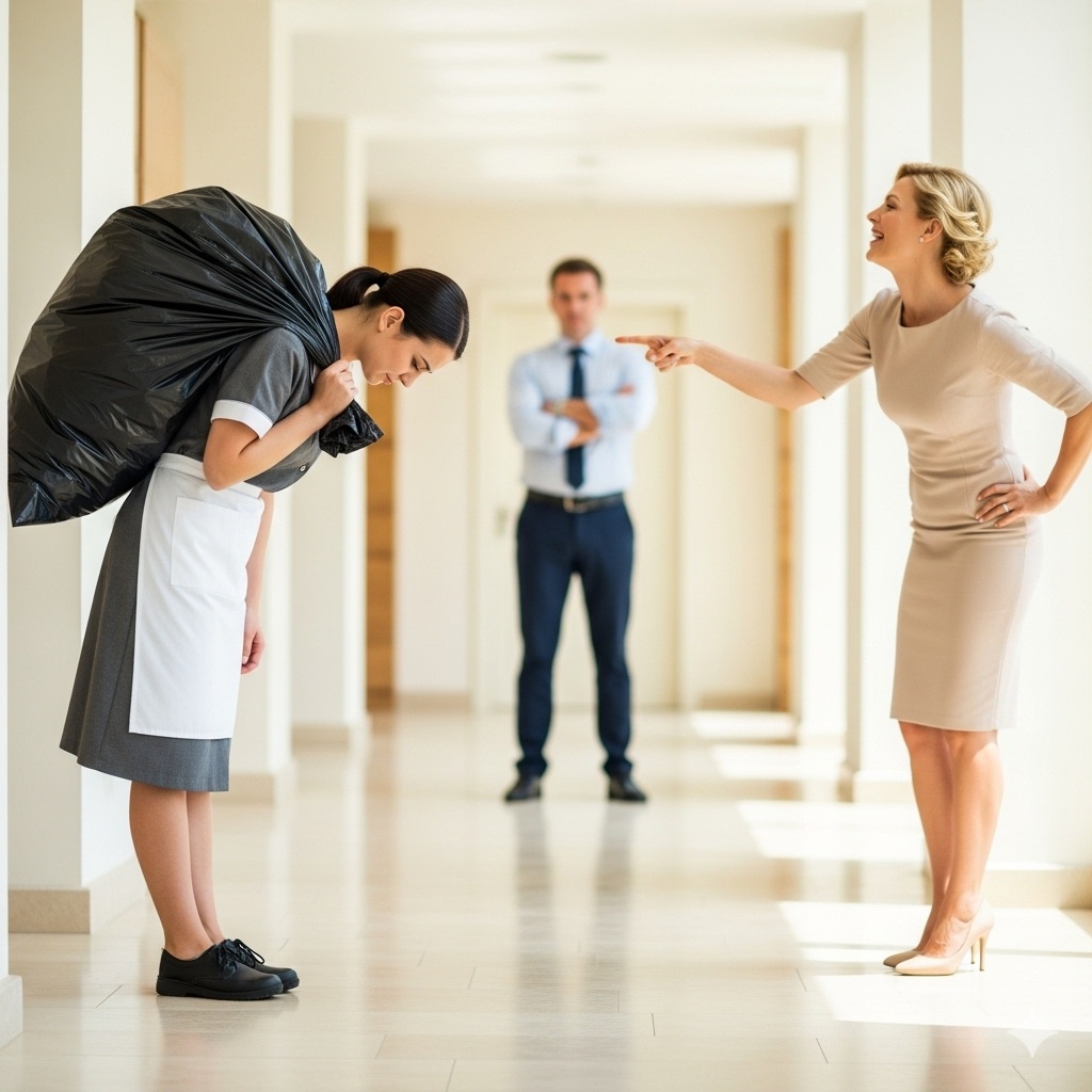 Delante de todos, señaló a Rosa, la trabajadora doméstica que cargaba una enorme bolsa de basura en la espalda, y dijo cruelmente: