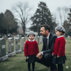 Pero no fue el nombre de la tumba lo que lo detuvo. Fueron las dos pequeñas figuras arrodilladas junto a ella. Al principio las vio de lejos: dos niñas pequeñas, de unos cinco años, con el mismo pelo castaño recogido en coletas bajas y con suéteres rojos que parecían demasiado abrigados para el aire veraniego.