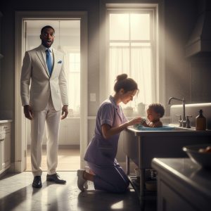 Sus movimientos eran suaves, meticulosos, y su rostro reflejaba una calma que desarmaba. Sion estaba en una pequeña bañera plástica dentro del fregadero. Su cuerpecito moreno se sacudía de alegría con cada pequeña ola de agua tibia que Clara vertía sobre su barriga. Leonard no podía creer lo que veía. La criada estaba bañando a su hijo. En el fregadero, sus cejas se fruncieron, su instinto se disparó. Eso era inaceptable. Rosland no estaba y nadie nadie tenía permiso de tocar acción sin supervisión, ni siquiera por un minuto dio un paso al frente enfurecido, pero algo lo detuvo.