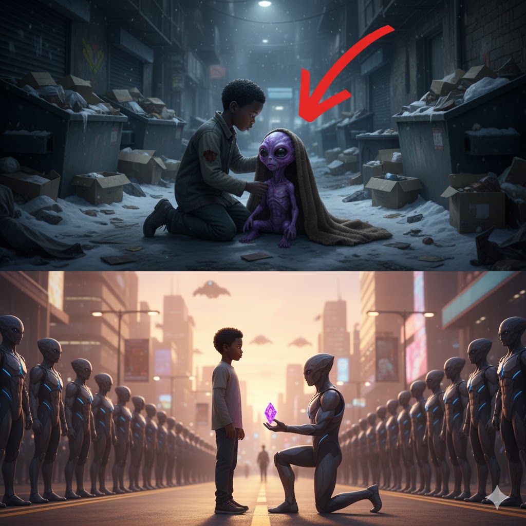“Un niño sin hogar le da su única manta a un alienígena moribundo — Al día siguiente, 200 guerreros alienígenas aparecen.”