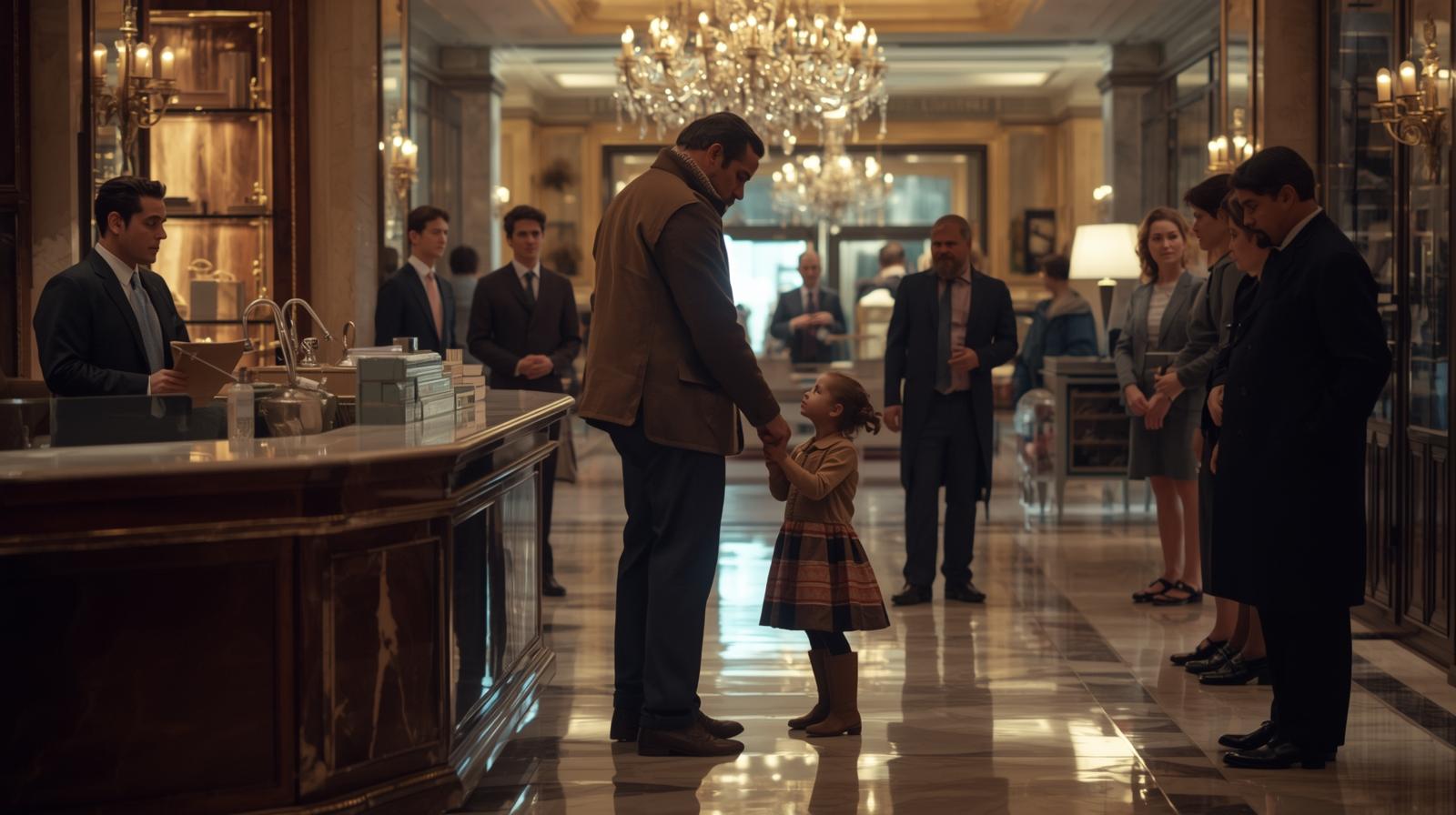 La pequeña tiró de su manga, confundida y asustada. No entendía por qué todos miraban así a su papá. Aun así, él se mantuvo erguido, negándose a salir. Quería demostrar que incluso un hombre pobre tenía derecho a soñar.