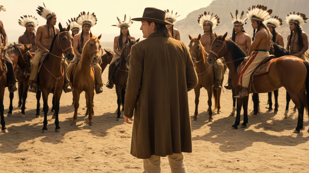 Ayer esta misma cresta estaba vacía. Ayer había tomado una decisión que parecía sencilla. Ayer había entregado su único caballo para llevar a una mujer apache herida a un lugar seguro, quedando abandonado a 32 km del asentamiento más cercano. Ahora esos 70 guerreros sostenían algo en las manos que no tenía sentido. Cada uno llevaba una sola pluma blanca.