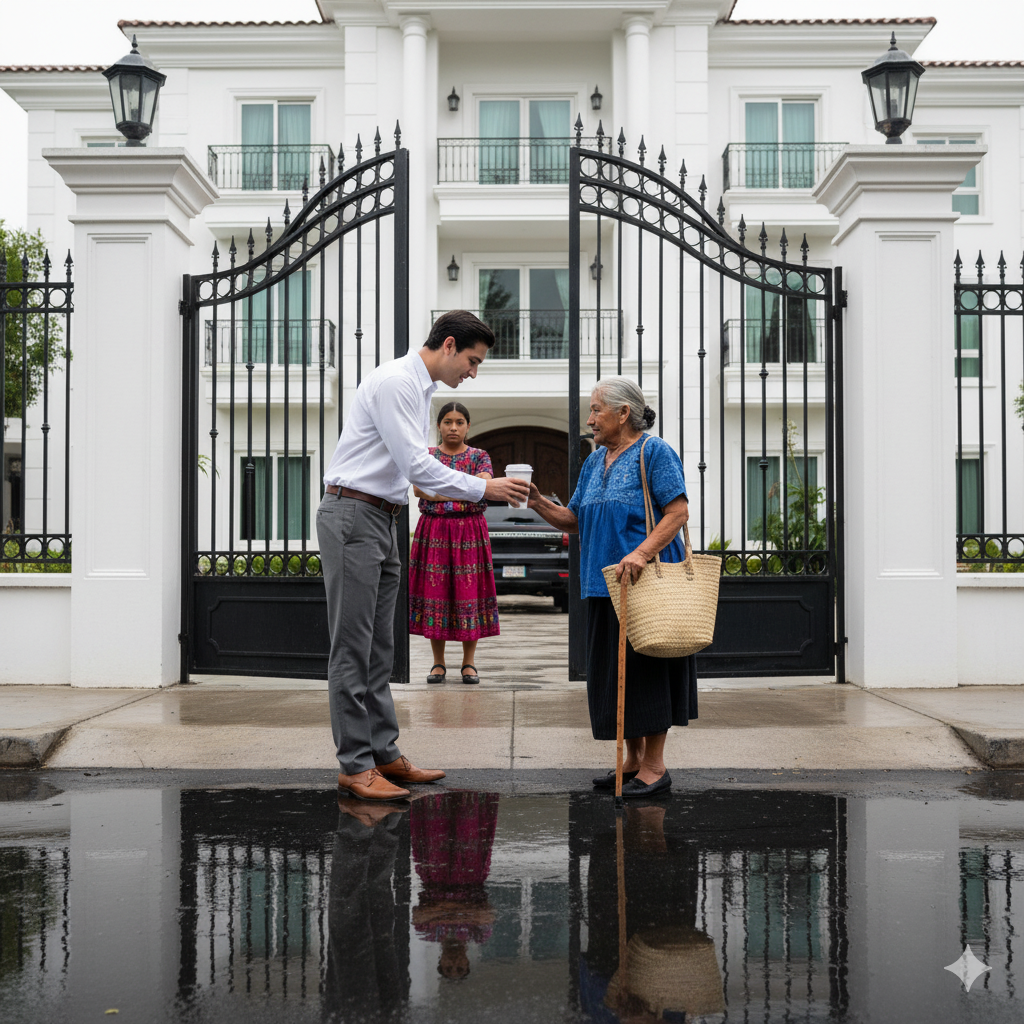 Doña Dolores bajó la cabeza, abrazó el paquete contra su pecho y trató de esconder las lágrimas. La puerta de hierro se cerró, dejando atrás a la anciana, sola bajo la lluvia.
