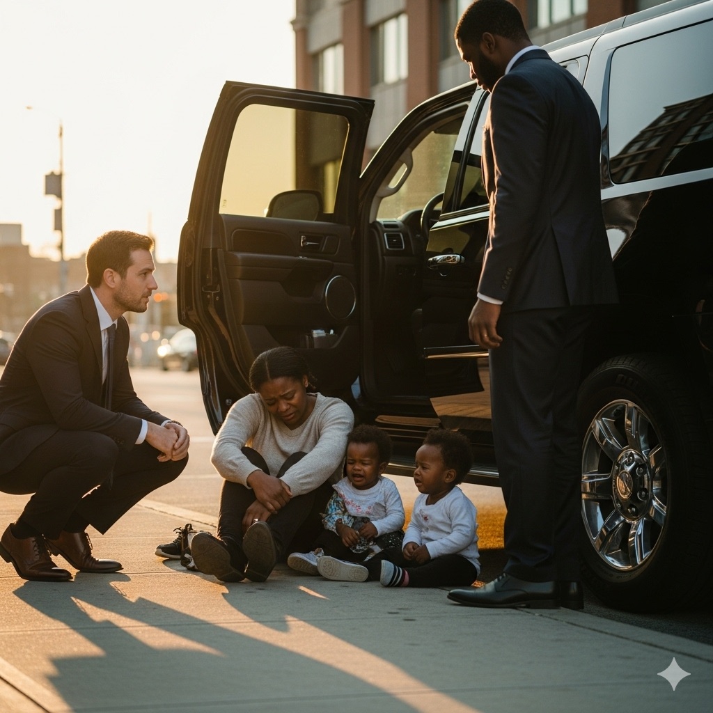 En ese momento, una lujosa SUV negra redujo la velocidad junto a la acera. La ventanilla polarizada se bajó, revelando a un hombre elegantemente vestido, de poco más de cincuenta años. Su nombre era Richard Caldwell, un multimillonario empresario cuyo rostro aparecía a menudo en revistas con titulares sobre fortuna e innovación. Se dirigía a una reunión cuando notó la conmoción. Algo en la visión de los niños llorando atravesó las capas de indiferencia que la riqueza suele construir.