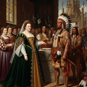 Vestía sus mejores galas de guerra, pero había venido en son de paz, como lo indicaban las plumas blancas que llevaba en el cabello.